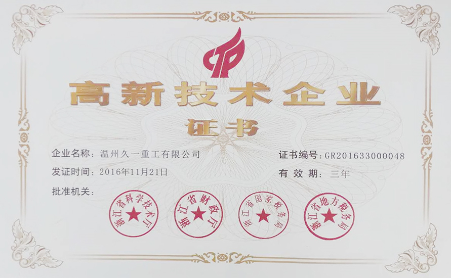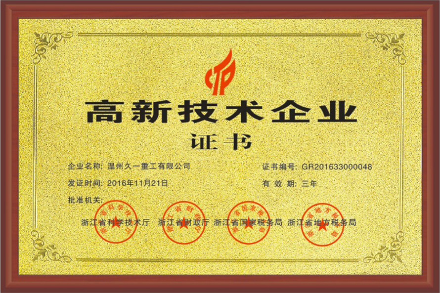 公司先后通過了ISO9001質(zhì)量管理體系認(rèn)證、ISO14001環(huán)境管理體系認(rèn)證與OHSAS1801職業(yè)健康管理體系認(rèn)證。在發(fā)展過程中公司被認(rèn)定為“國家高新技術(shù)企業(yè)”、“專精特新企業(yè) ”、浙江省科技型中小企業(yè)、溫州市科技創(chuàng)新型企業(yè)、溫州市企業(yè)技術(shù)研究開發(fā)中心。并且公司產(chǎn)品獲得了“溫州名牌產(chǎn)品”的殊榮。