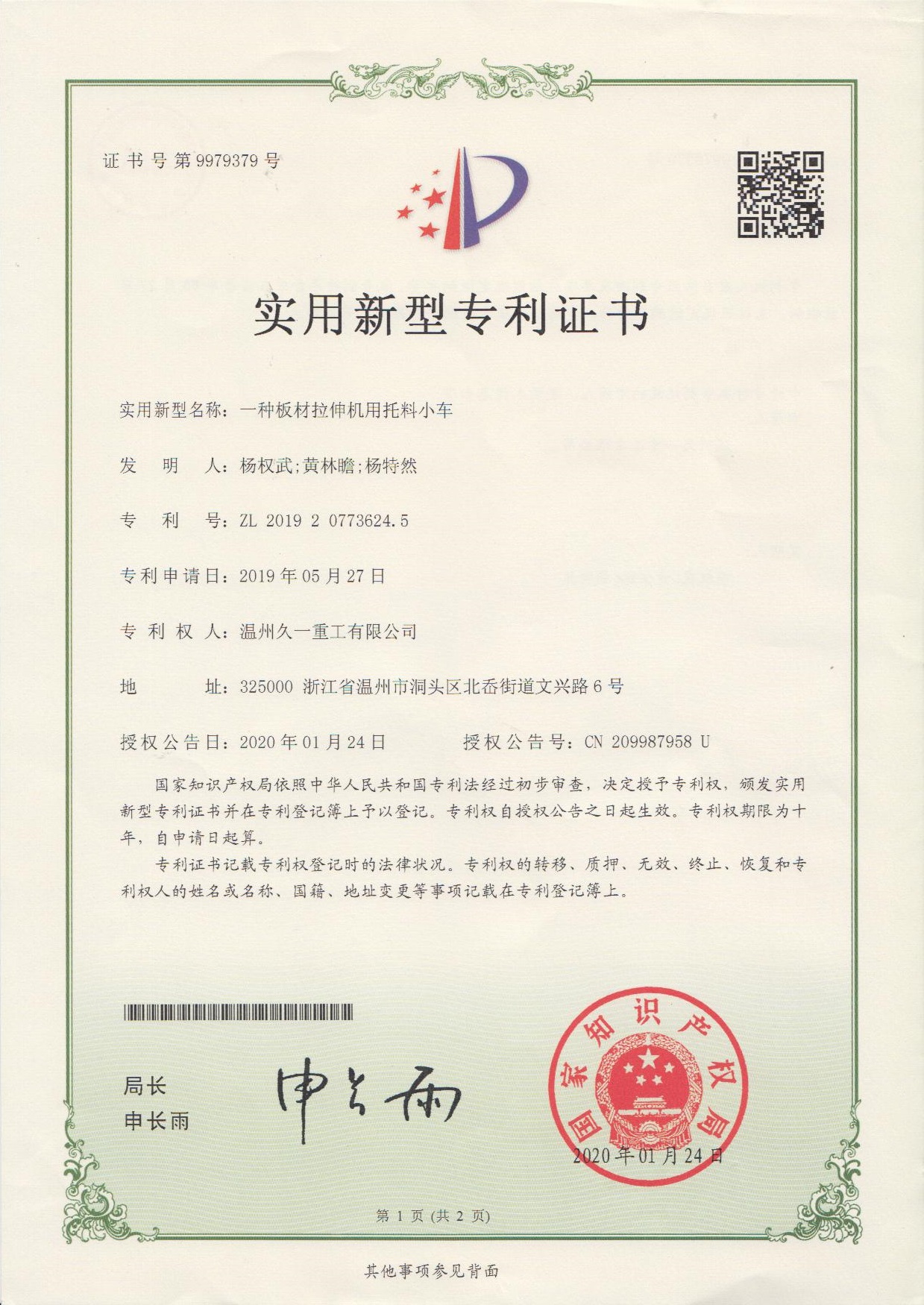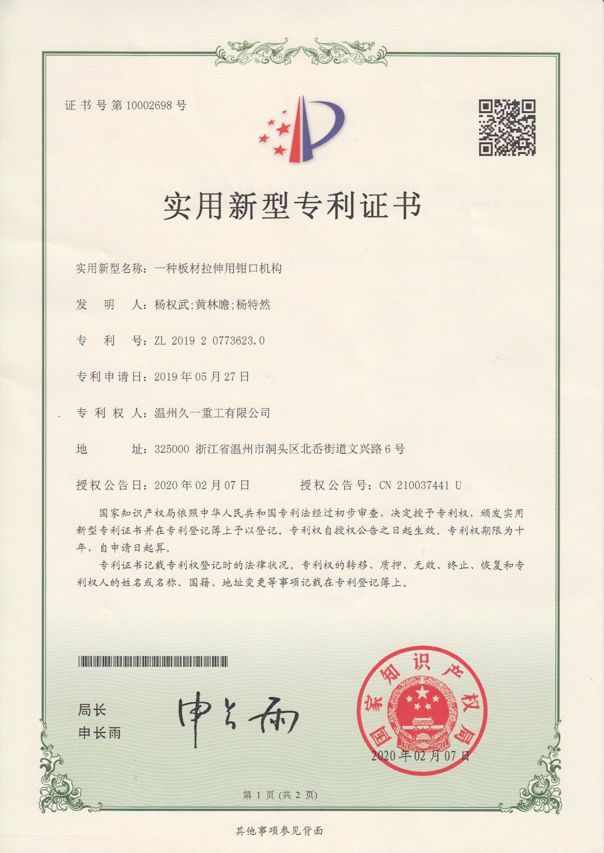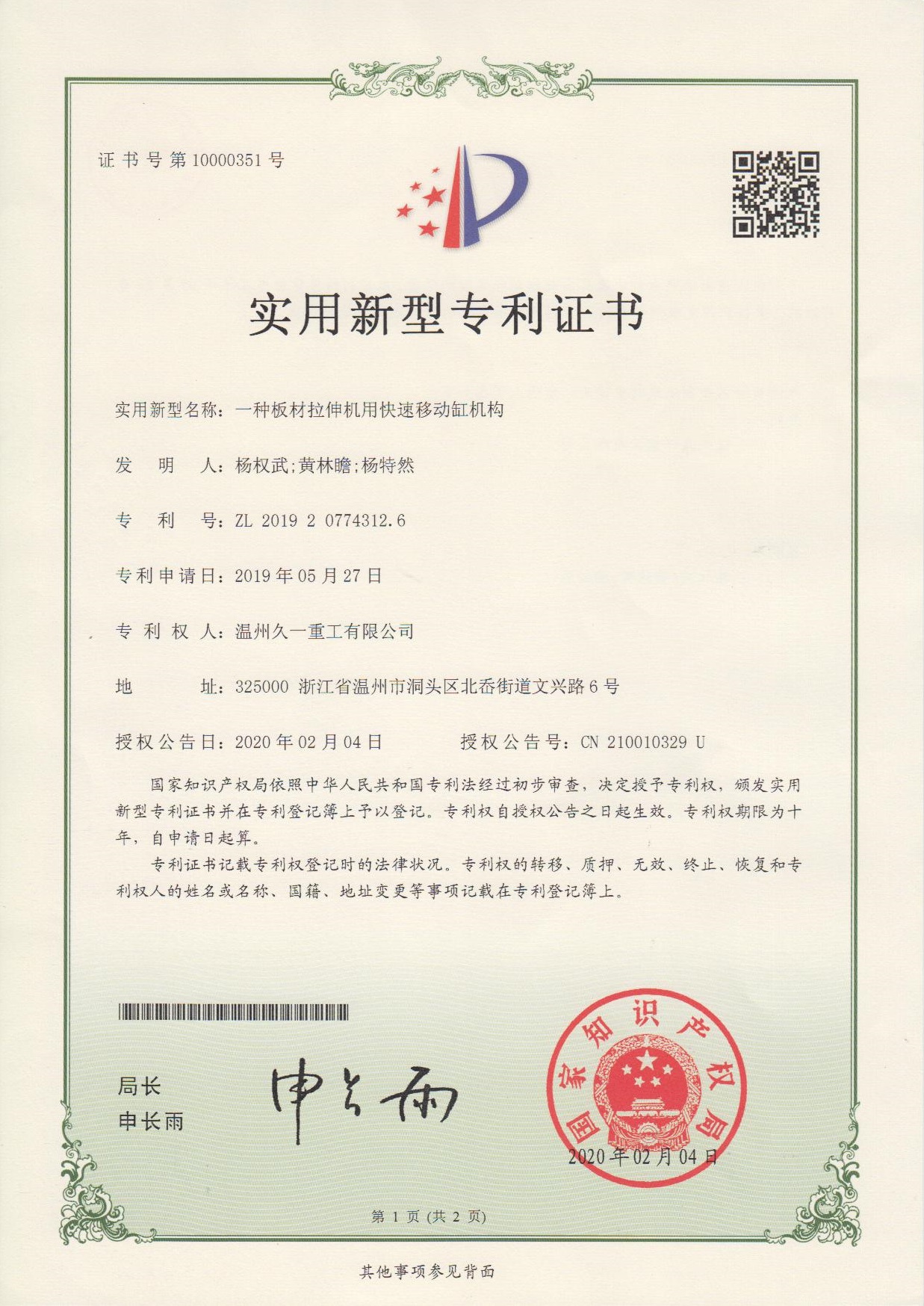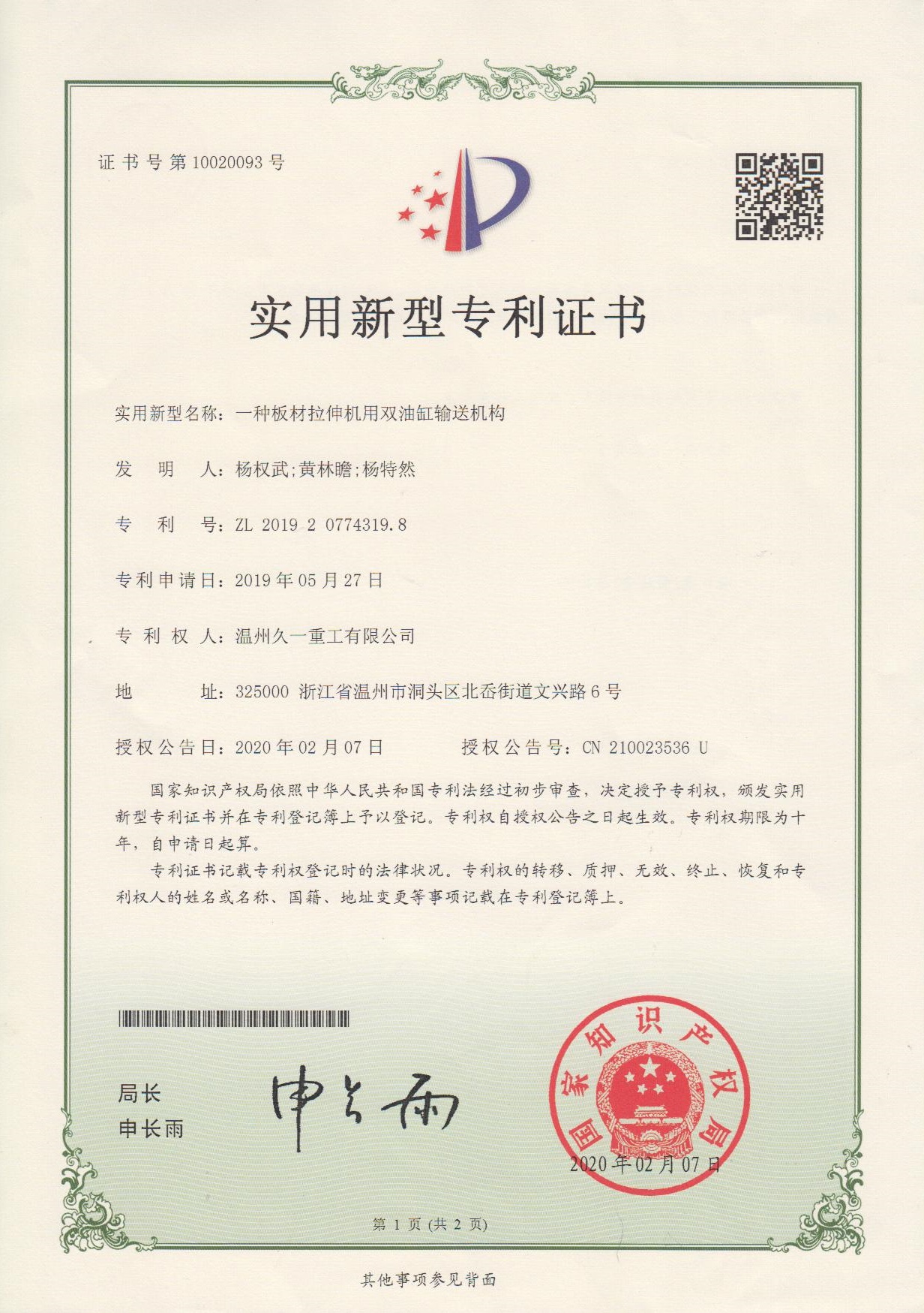 溫州久一重工有限公司是一家專業(yè)從事金屬管棒、型材和板材冷加工精整設(shè)備設(shè)計(jì)、制造、銷售的高新技術(shù)企業(yè)。目前主要暢銷產(chǎn)品有:板材拉伸機(jī)(20MN~180MN)、拉彎矯直機(jī)(0.8~15*600~2600)、張力拉伸機(jī)(1MN~60MN)、輥式管棒矯直機(jī)(Φ8mm~Φ960mm)、精密輥式管棒矯直機(jī)(Φ8mm~Φ280mm)、扭擰機(jī)(10~100KN?M)、鏈?zhǔn)嚼浒螜C(jī)(0.5~600T)、懸臂式冷拔機(jī)(3~120T)、液壓冷拔機(jī)(200~2000T)、龍門式型材矯正機(jī)(400~1200MM)、懸臂式型材矯正機(jī)(50~400MM)、壓力機(jī)(100~1200T)、軋頭機(jī)(Φ8~Φ120)、液壓縮頭機(jī)(Φ30~500)等等,并可根據(jù)客戶需要定制各種非標(biāo)產(chǎn)品。目前,客戶涵蓋了海內(nèi)外知名企業(yè),在業(yè)內(nèi)享有了一定口碑和美譽(yù)度。