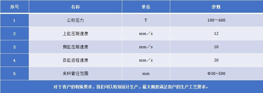 高效壓制大規(guī)格的管材,有效節(jié)省制頭廢料,制頭效果好,易于拉拔機穿模,制頭端部不易拉斷。
